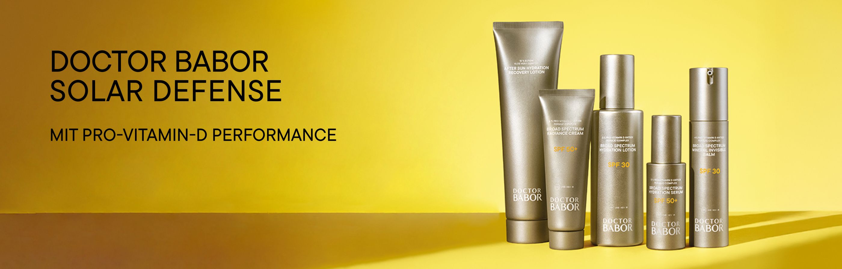Sonnenschutz neu gedacht: Die DOCTOR BABOR SOLAR DEFENSE Linie bietet ein durchdachtes Pflegesystem mit abgestimmten Texturen und ausgewählten Wirkstoffkomplexen.